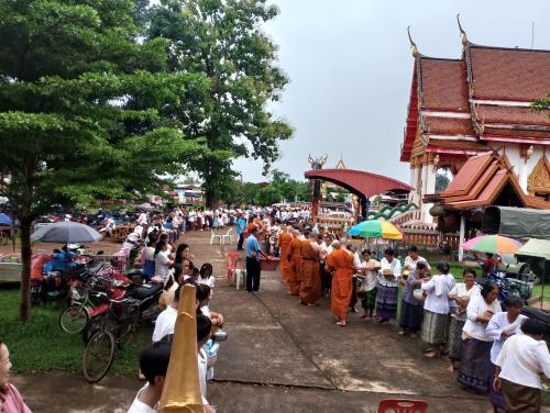พช.นาหว้า ขับเคลื่อนกิจกรรม “วัดประชารัฐสร้างสุข” ร่วมพิธีทำบุญตักบาตรเนื่องในโอกาสวันเข้าพรรษา